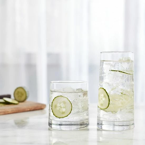 - Eight 15.8-oz. tumbler glasses & eight 10.8-oz. rocks glasses